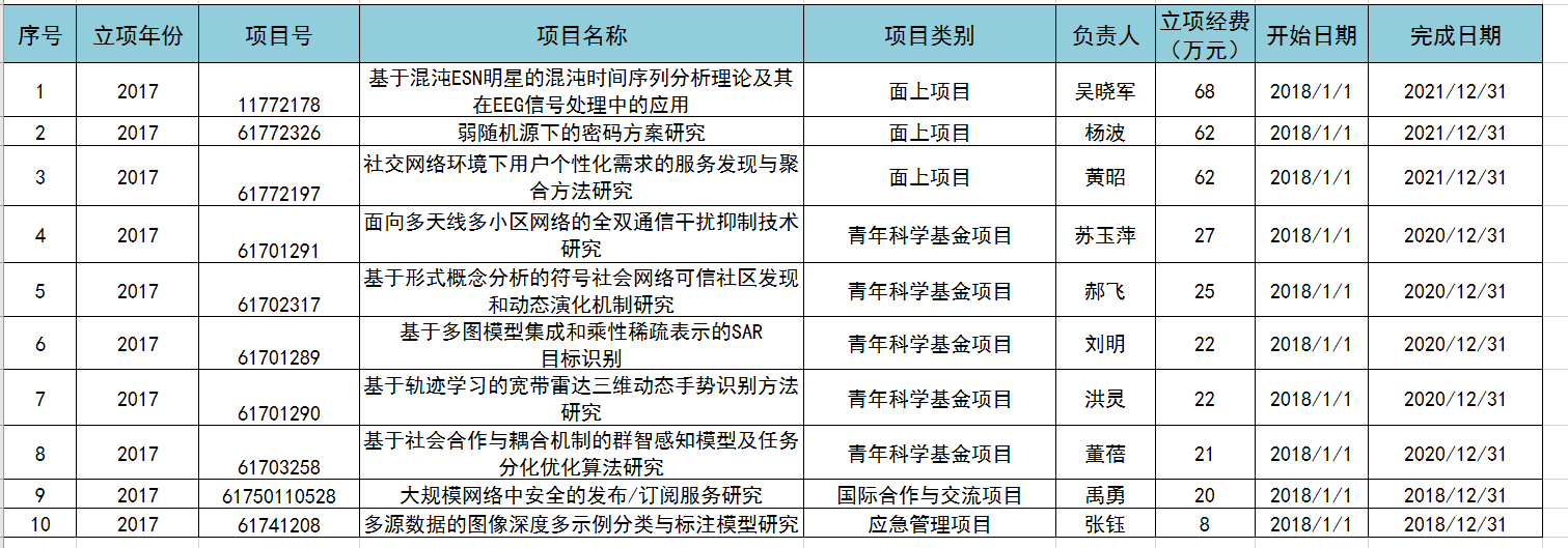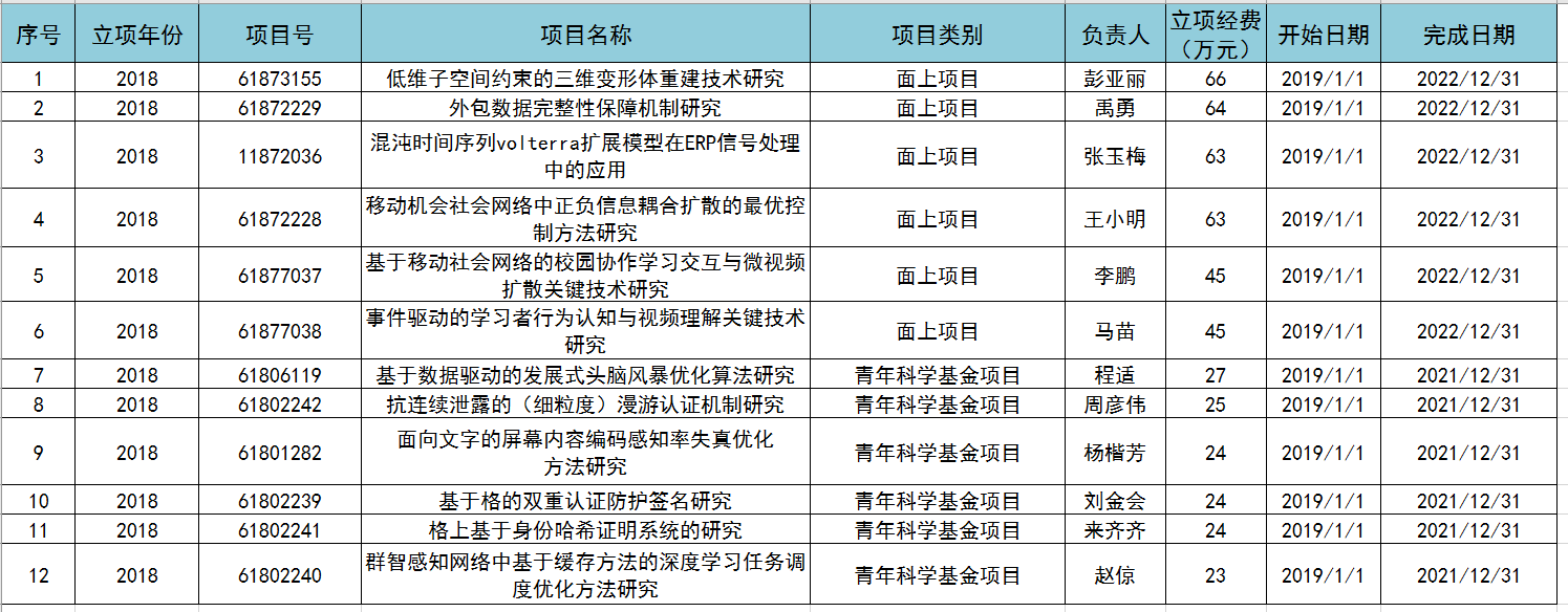 学院承担国家自然科学基金项目一览表(更新至2018年12月)