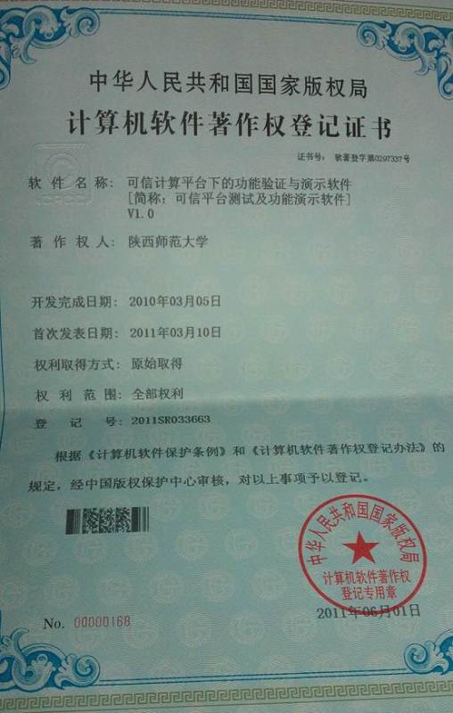软件著作权-可信计算平台下的功能验证与演示软件V1.0