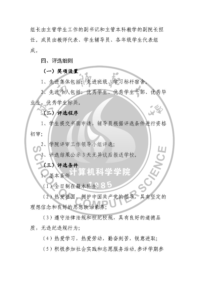 91猫先生 本科生先进集体和先进个人评选细则