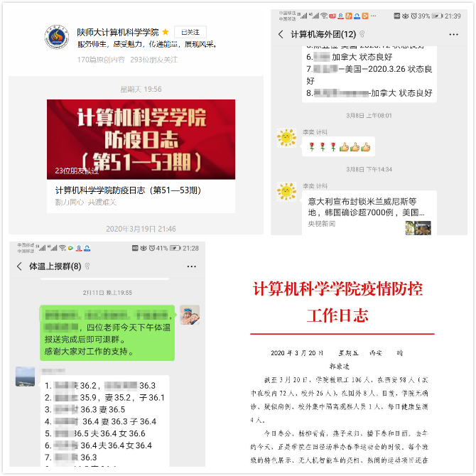 元宵节当天,学院7户教工在长安校区隔离观察,万家灯火中,学院防疫联络员将元宵送到他们手中。2月23日下午,学院为在校门口执勤的校卫队队员们送去了五箱矿泉水浅表学院对他们的感激和理解。3月9日,学院防疫小组安排专人对李鹏、黄昭、张麦俠和离退休教师文林进行了慰问,他们有一个共同的名字:医务人员家属。