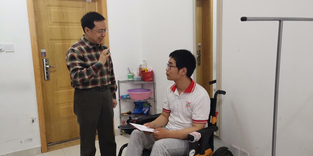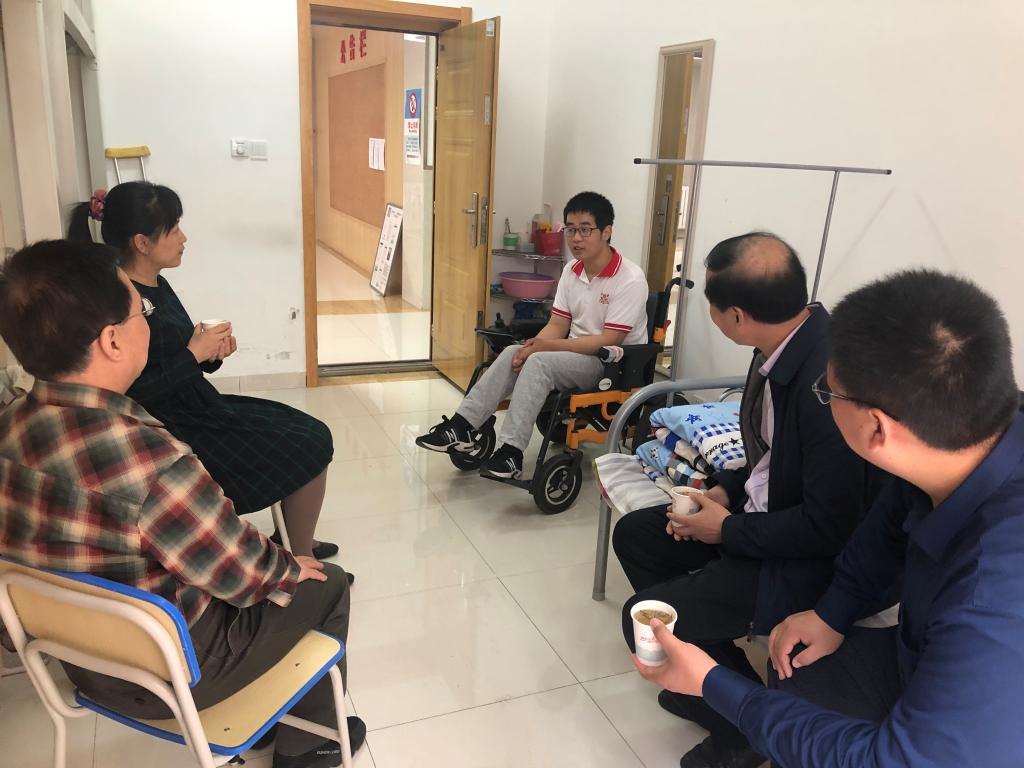 王院长、黄书记等学院领导来到邓龙彦宿舍,与学生亲切交谈,询问学生的生活、学习、身体状况和目前存在的困难。