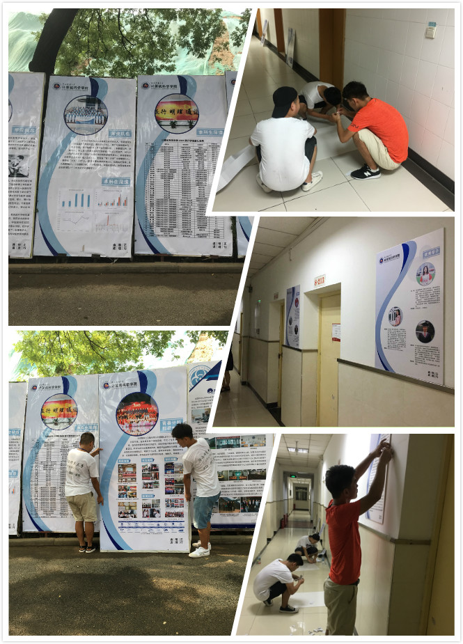 8月20日一大早,迎新志愿者来到雁塔校区。学院为2018级新生精心准备了新生提袋、印有学院院徽的文件袋,《我们的家风故事》《新生入学手册》等迎新资料。《新生入学手册》《学生手册》等详细告诉了新生应如何开启大学生活;《我们的家风故事》从新生饱含真情的作品中选刊而出,借以呼吁计科学子传承优良家风。志愿者们紧接着赶到了学汇路,顶着烈日,悉心制作并认真摆放展板。尽管天气炎热,衣衫尽湿,但大家毫无怨言。之后,志愿者们又马不停蹄地赶往男生8号宿舍楼和女生院21楼,细心张贴楼道文化海报。一组精心设计的海报,全面而详细地介绍了计科院的发展历史、师资力量、学院文化、优秀学子等,为大一新生进一步了解学院、专业提供了恳切建议。