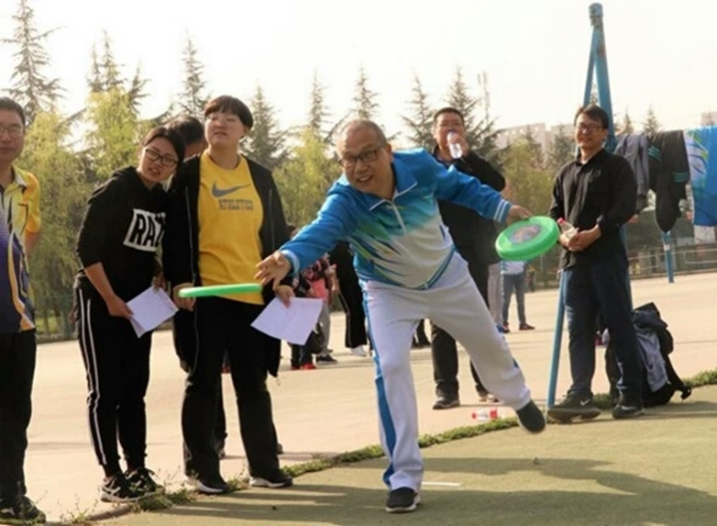 与此同时,教师运动会也在篮球场上顺利进行。教师比赛项目主要有篮球掷准、跳绳、鸡毛信、飞盘掷准等。老师们精神抖擞,热情洋溢,认真对待每一项比赛。现场欢呼声、呐喊声、加油声、笑声融成一片,此起彼伏,热闹劲儿丝毫不亚于学生场地。