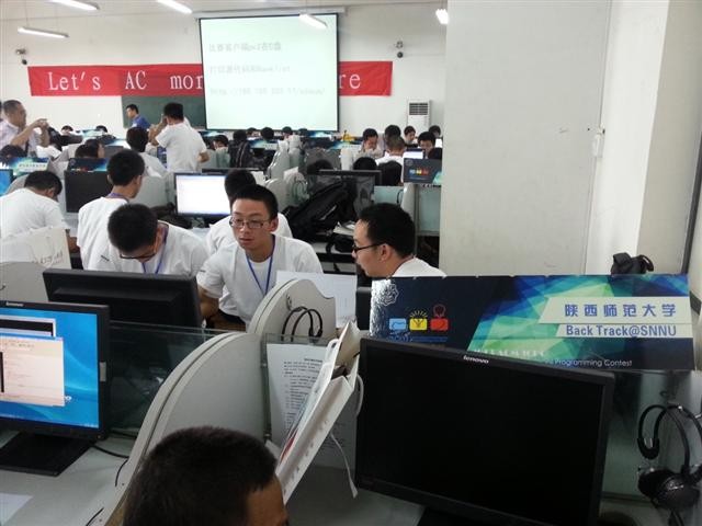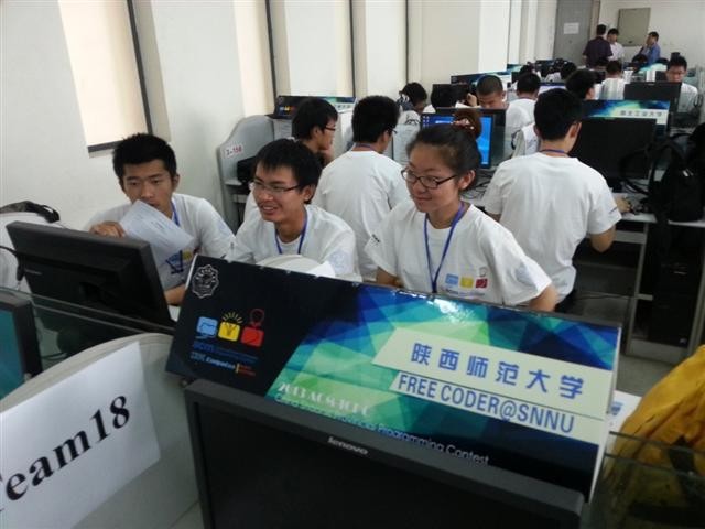 开幕式上,西安电子科技大学领导首先宣布“ACM-ICPC陕西省首届“酷派杯”程序设计竞赛”开幕。在随后的热身赛中,所有参赛队员开始熟悉比赛环境,尝试程序调试和提交程序。随后,为期5个小时的比赛正式开始。虽然比赛时间持续较长,但是丝毫没有影响到选手们参赛的热情,每支队伍都十分努力的在机器上实现解题方法,大家相互交流合作,秩序井然,坚持到比赛的最后一刻。