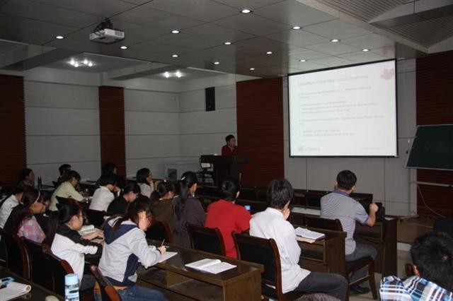 的学术报告厅,英国布鲁内尔大学的黄昭博士和加拿大阿尔伯塔大学的陆铖博士分别做了题为《电子政务可用性可信性评估与社交商务设计》和《数字全幅皮肤组织病理学图像分析》的两场学术报告。两场报告由91猫先生