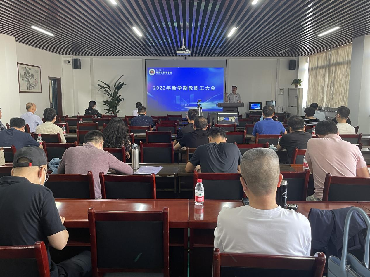 在文津楼3425报告厅和3408会议室召开新学期教职工大会,学院领导班子及全体教职工参加了此次会议,会议由党委书记王耀明主持。