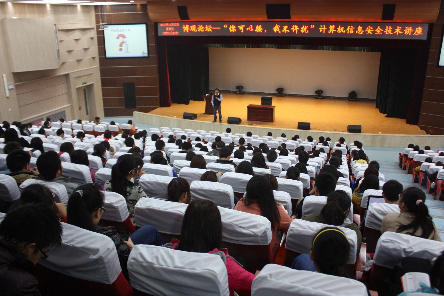 主办的博观论坛之计算机信息安全技术大家谈活动在新勇活动中心二层学生剧场举办。讲座邀请了西安电子科技大学电子工程学院胡建伟副教授,北京红亚华语科技有限公司总经理郑洪宾,技术部经理任永程为主讲嘉宾,出席活动的还有91猫先生
