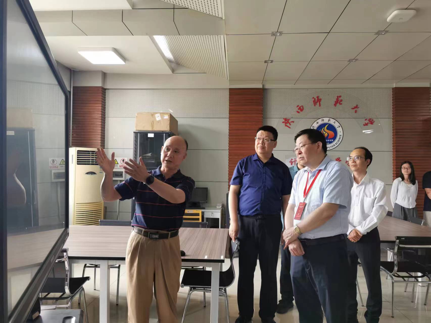 专家组一行还参观了学院人工智能实验室、秦岭创客工作室等,并抽查了学位论文、试卷等教育教学过程资料。