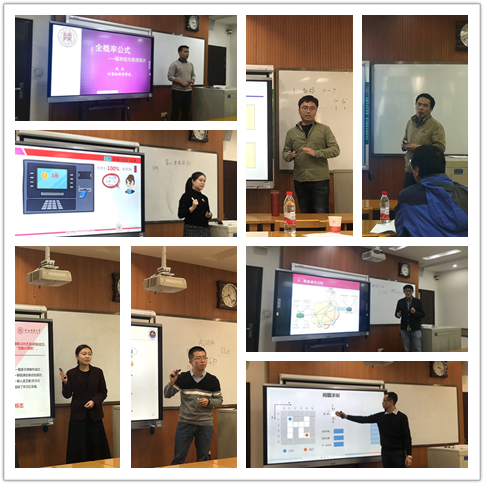李鹏、马苗、吴振强、郭龙江、范虹五位学院教学督导担任评委,共21位青年教师参赛,比赛分两组进行。比赛之前,各位老师精心备课,认真书写教学设计。比赛过程中,各位老师以清晰的思路、有趣的生活实例、清晰简洁的板书以及合理的课堂设计充分展现出了自己的教学水平和专业素养。