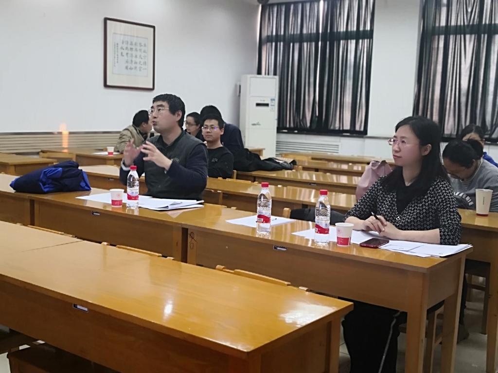 第一组青年教师分别以《全概率公式》、《计算机病毒》、《等价关系与等价类》等题目进行讲解。李志强老师以熊猫烧香病毒的视频作为开始,结合近期生活,将新冠病毒同计算机病毒进行类比,讲解了计算机病毒的定义、特点及主要危害等内容,最后,提醒大家在文明上网的同时也要注意做好防护措施。董蓓老师的讲授,从过河问题入手,通过类比的方法,引入到《有限自动机》的精彩讲解,最后以爱因斯坦的名言“学习知识要善于思考,思考,再思考,我就是靠这个方法成为科学家的”结尾,巧妙地融入了思政元素,获得了大家的一致好评。第一组评委老师们肯定了各位参赛教师的进步和优点,也给出了诸多中肯的建议。马苗老师提到课堂思政元素应该贯穿整个课程,达到“润物无声”的效果,同时在讲课过程中要做到首尾呼应,选择生活中的实例让听者更容易理解。郭龙江老师提到在课堂讲解中要注意逻辑的严密性,要与学生有适当的的互动,留给学生一定的思考时间,课件中符号的定义与使用一定要准确。