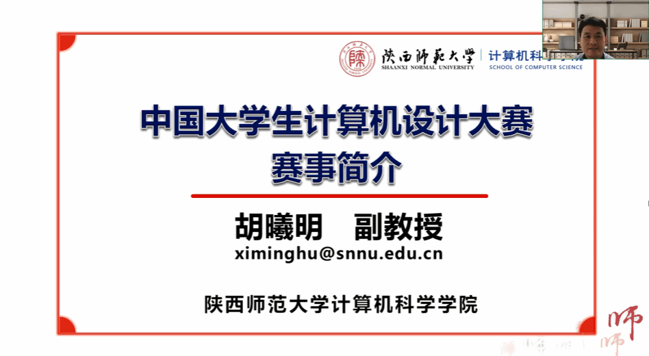 胡曦明介绍了中国大学生计算机设计大赛,展示了该竞赛的基本信息、规模与要求,简要地概括了竞赛的特点,分析竞争强度与适配程度。他谈到,虽然竞赛难度逐年加大,但竞赛是同学们磨砺自我的宝贵机会。