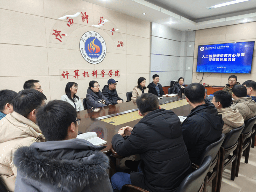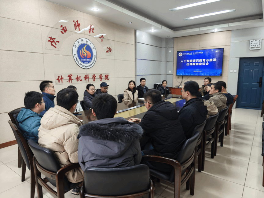 开学前夕,学院于2025年2月21日下午在长安校区文津楼3431会议室,组织召开了人工智能通识教育必修课任课教师座谈会。会议由院长姚若侠主持,教学副院长李鹏、通识教育课程群负责人马君亮以及《人工智能开发实践》通识教育必修课全体任课教师参会,座谈会围绕课程改革与教学质量提升展开深入交流。
