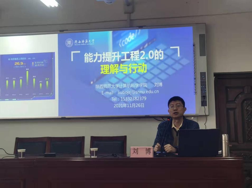刘博老师为基层教师做了题为“能力提升工程2.0的理解与行动”首场报告,报告从提升工程2.0实施背景、目标任务、面对的挑战等三个方面进行了阐述。报告内容详实,讲解生动风趣,受到参训教师学员和项目组织方好评。此次培训将进一步提升两县中小学幼儿园对信息技术应用能力提升工程2.0的深入理解和实操体验,有效推进项目高质量开展。