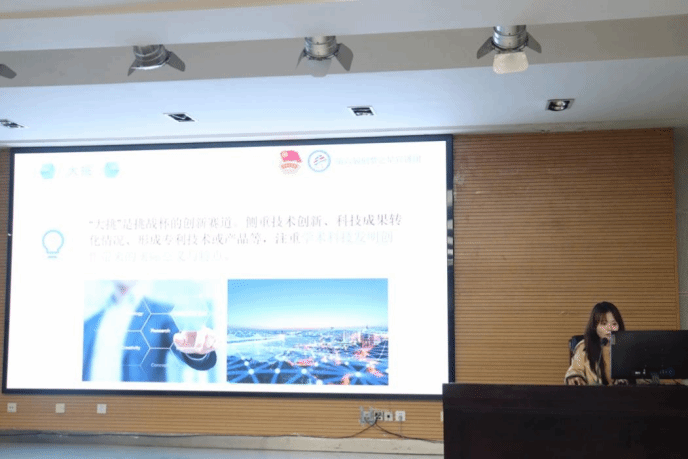 黄晶晶老师介绍了“挑战杯”竞赛的相关信息,讲解了“大挑”与“小挑”的区别、竞赛发展的趋势、赛段等相关情况。向同学们分享了参赛经验,指出注重细节与团队协作的重要性,鼓舞同学们踊跃参加,在比赛锻炼中不断突破困难、提高自我。