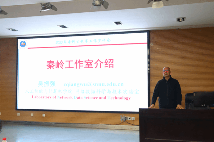 吴振强教授向同学们介绍了秦岭创客工作室基本情况。他通过展示工作室学生所取得的优异成绩,展现了秦岭创客工作室作为创新创业平台与资源库,在AI赋能教育教学以及信创教育等方面的积累和成绩。