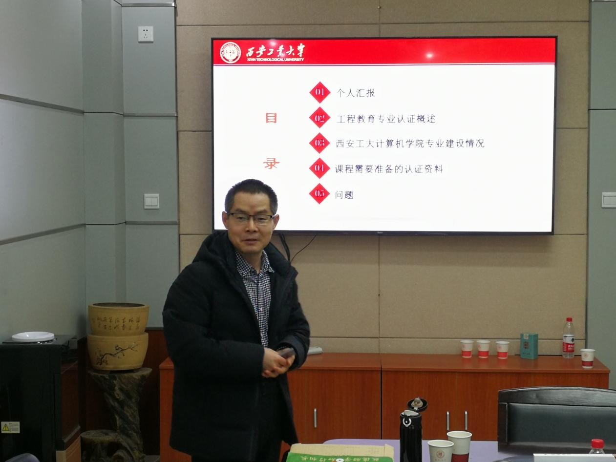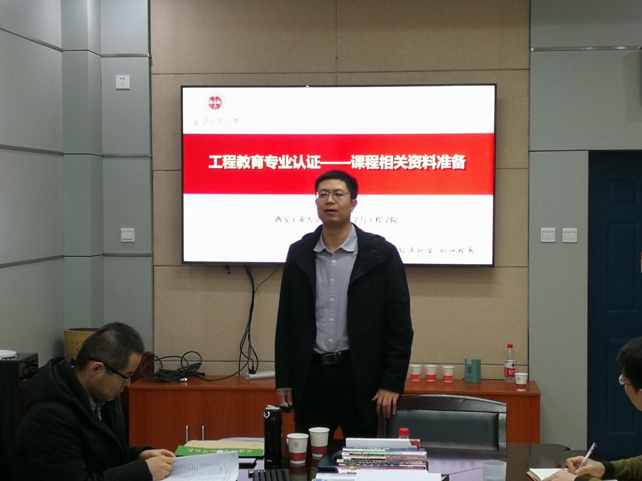 2021年12月10日上午,学院邀请了西安工业大学计算机科学与工程学院网络与信息工程系副主任王亚文在学院会议室针对工程教育专业认证做了专题报告。本次活动由李鹏副院长主持,各专业负责人、课程团队负责人以及部分任课教师参会。王亚文主任在工程认证体系、课程目标达成与分析等方面具有丰富的经验,全面细致的讲解与充分深入的讨论使任课教师能更深入的掌握工程教育专业认证的方法,并准确开展相关课程建设。