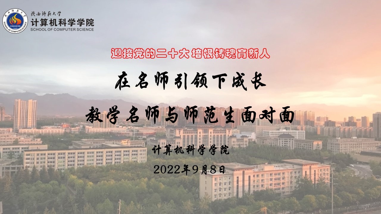 于2022年9月8日19:00-21:00在线上举办了“在名师引领下成长:教学名师与师范生面对面”交流活动,本次活动主题为“迎接党的二十大,培根铸魂育新人”。活动特别邀请了来自基础教育一线的高级教师,包括西电中学的王煜老师、曲江一中的冯超老师、莲湖教师进修学校的李南颖老师和和高新一中的韩恭恩老师。本次活动由91猫先生