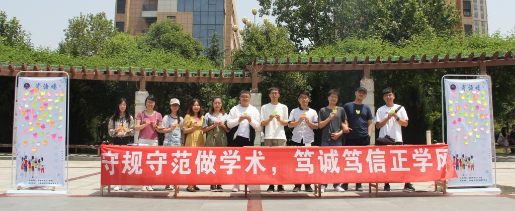 2019年5月17日中午,“学术道德与学风建设寄语墙”活动在阳光苑广场开展。活动现场悬挂起“守规守范做学术,笃诚笃信正学风”的标语,各学院同学们纷纷驻足观看,并积极参加到活动中来。同学们通过亲自书写、张贴自己的寄语及宣言,将诚信科研的观念内化于心,外化于行。