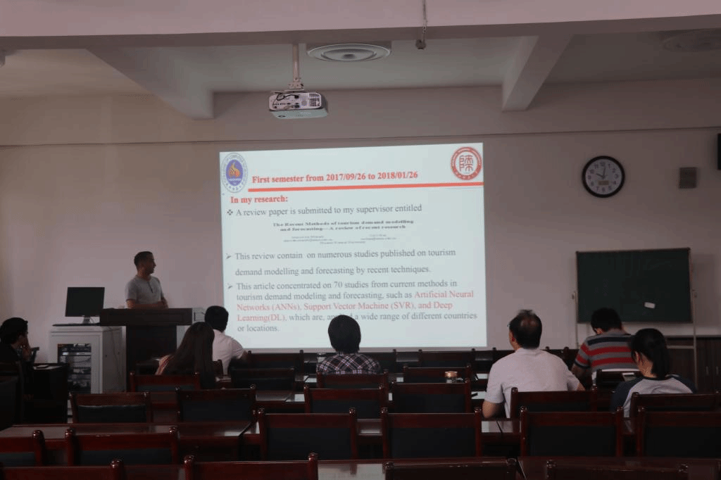 获得中国政府奖学金、学校优秀来华国际学生奖学金获得者。参与评审的奖学金生以PPT形式展示了2017-2018学年课程学习情况、科研进展及参加的课外活动等。留学生不仅学习态度端正、研究进展顺利,而且部分同学的汉语学习取得了良好的成绩,比如汉娜同学全程汉语汇报学习进展,得到了师生一致好评。评委们对学生的汇报进行提问并和学生进行学术交流,气氛融洽。本次国际学生奖学金评审会议在师生热烈的探讨中取得圆满成功。