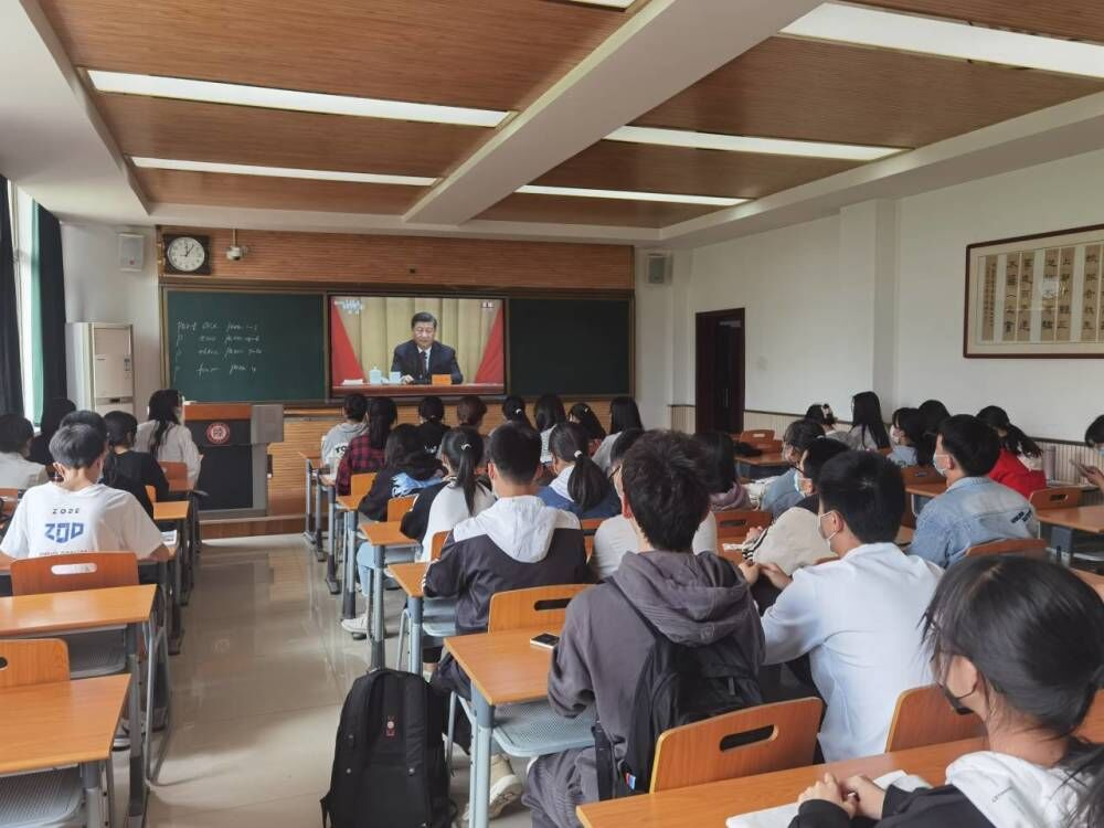 学院党委书记王耀明、党委副书记郭康凌、团委书记何文曦、各年级辅导员以及30余名学生团员代表,在文津楼3412报告厅共同收看了大会直播。与此同时,学院各团支部通过在教室线下集中观看、腾讯会议线上共同收看、课后收看回放等多种方式,积极组织团员深入学习贯彻习近平总书记重要讲话精神,大家认真观看,用心记录,倍受鼓舞,获益良多。