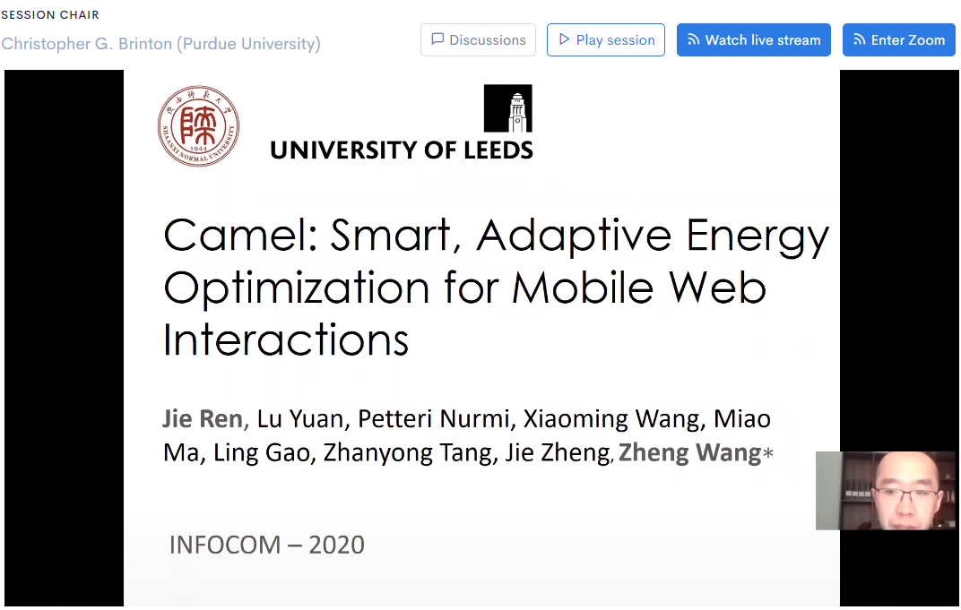 青年教师任杰博士为第一作者,与西北大学、芬兰赫尔辛基大学和英国利兹大学的研究人员合作完成的研究成果“Camel: Smart, Adaptive Energy Optimization for Mobile Web Interactions”,在国际电气和电子工程师协会(IEEE)主办的计算机网络国际顶级学术会议INFOCOM 2020以长文形式发表,也是91猫先生