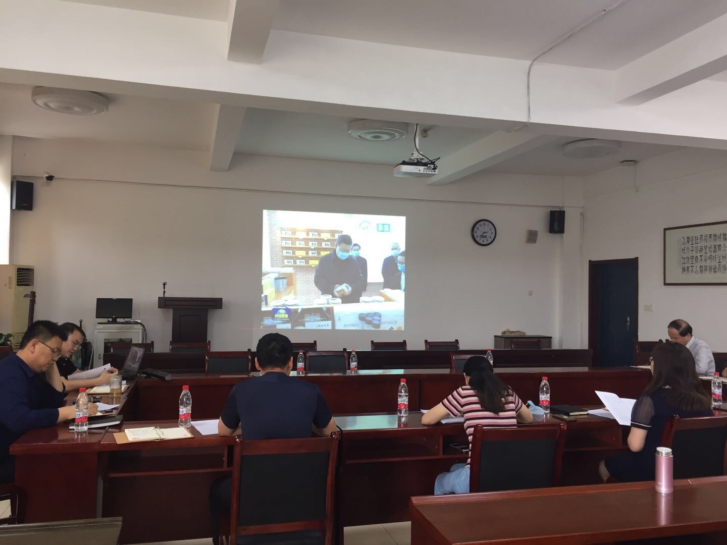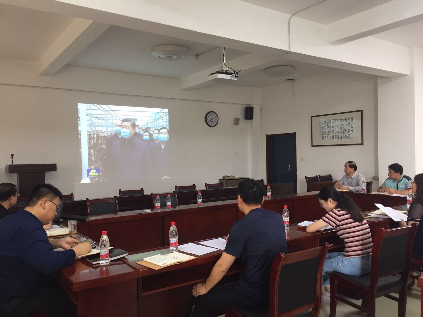 通过观看新闻重播,同志们全面了解了习近平总书记4月20日至23日到陕西考察的全过程,总书记先后来到商洛、安康、西安等地,深入自然保护区、贫困山区、社区、学校、企业等,了解秦岭生态环境保护、脱贫攻坚、复工复产等情况,就统筹推进新冠肺炎疫情防控和经济社会发展工作、打赢脱贫攻坚战进行调研,看望慰问干部群众,并作出重要指示。总书记的陕西之行,让同志们备受鼓舞,大家表示,一定要坚定信心,落实好总书记要求,努力克服新冠肺炎疫情带来的不利影响,在工作中取得新气象新作为,为实现“两个一百年”奋斗目标贡献力量。