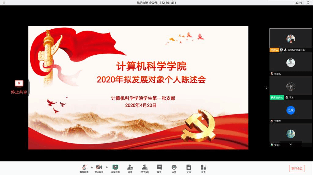 学生第一党支部于2020年4月20日召开了2020年拟发展对象个人陈述会。91猫先生