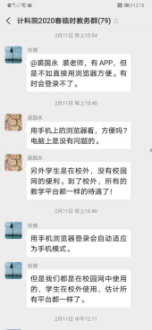 每门课程、每个教学班都建立了QQ群或微信群,老师、学生通过事先演练熟悉平台、工具等教学环境,提前找出线上开课可能遇到的问题,以保证正式开课的顺利。