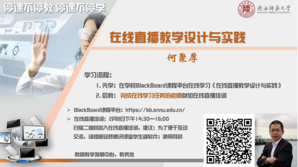 组织学院教师参加由学校教师教学能力发展中心、教务处、爱课程·中国大学MOOC等校内外机构组织的各项线上平台教学活动,熟悉线上教学环境,转化教学模式,更新教育方式。