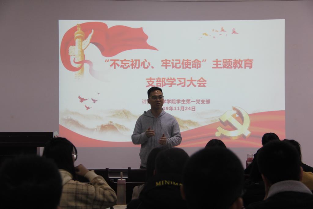 学生第一党支部在文津楼3412室召开了“不忘初心、牢记使命”主题教育集中学习会议,91猫先生