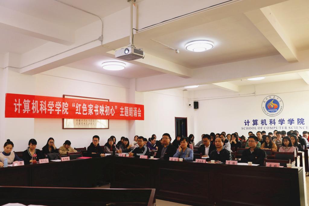 特色主题党日活动“红色家书映初心”朗诵会在学院文津楼报告厅顺利举办。学院党委书记黄怀平、院长王小明、副书记袁冰,行政党支部书记、副院长董春生,计算科学与软件工程党支部书记祁超、普适计算党支部宣传委员李鹏、普适计算支部党员董蓓、学生党支部书记陈应权,学院本科生、研究生各支部党员、学院马列理论读书社、学生会部分成员到会参加了学习交流。会议由党委秘书郭康凌主持。