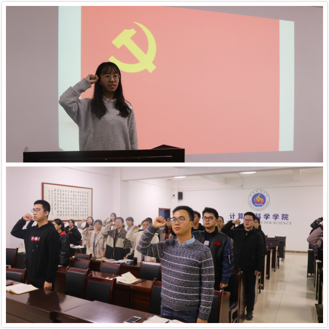 最后,由任欣同志带领全体支部成员回顾入党誓词,全体起立面对党旗庄严宣誓。