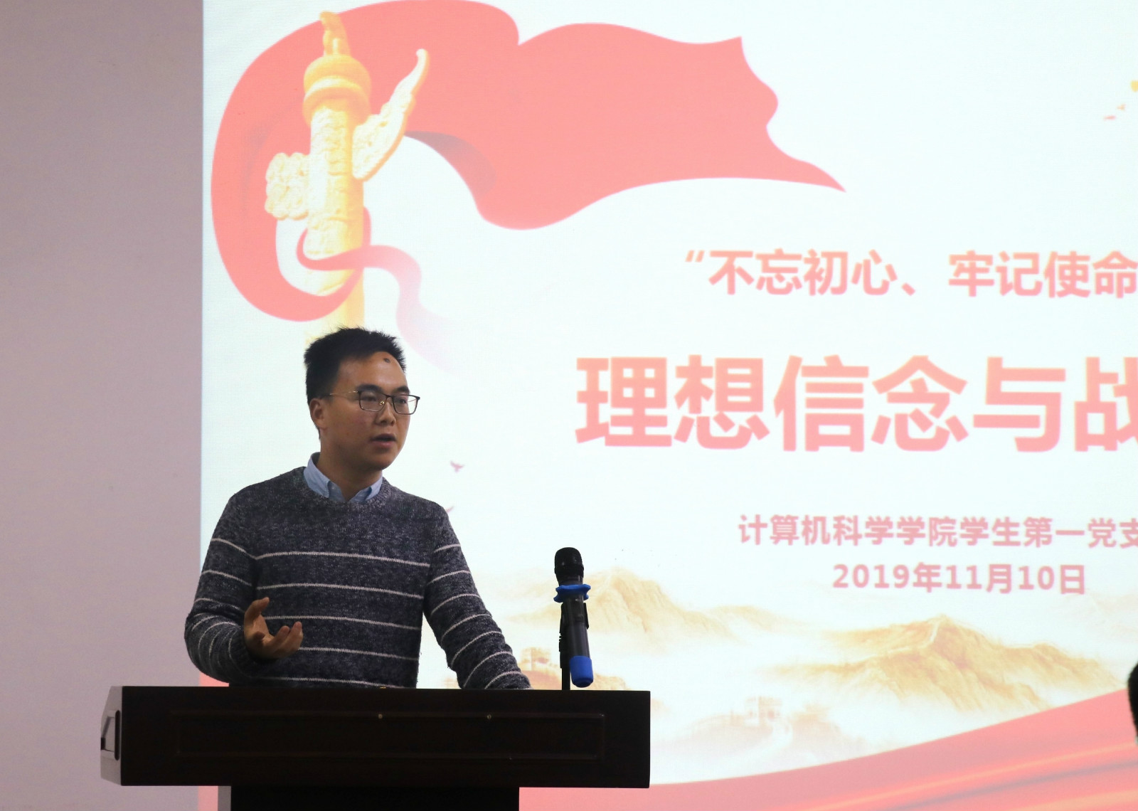 学生第一党支部在文津楼3412报告厅开展了“不忘初心、牢记使命”主题教育学习会议,会议由学生第一党支部书记陈应权主持,支部全体成员参加了此次会议。