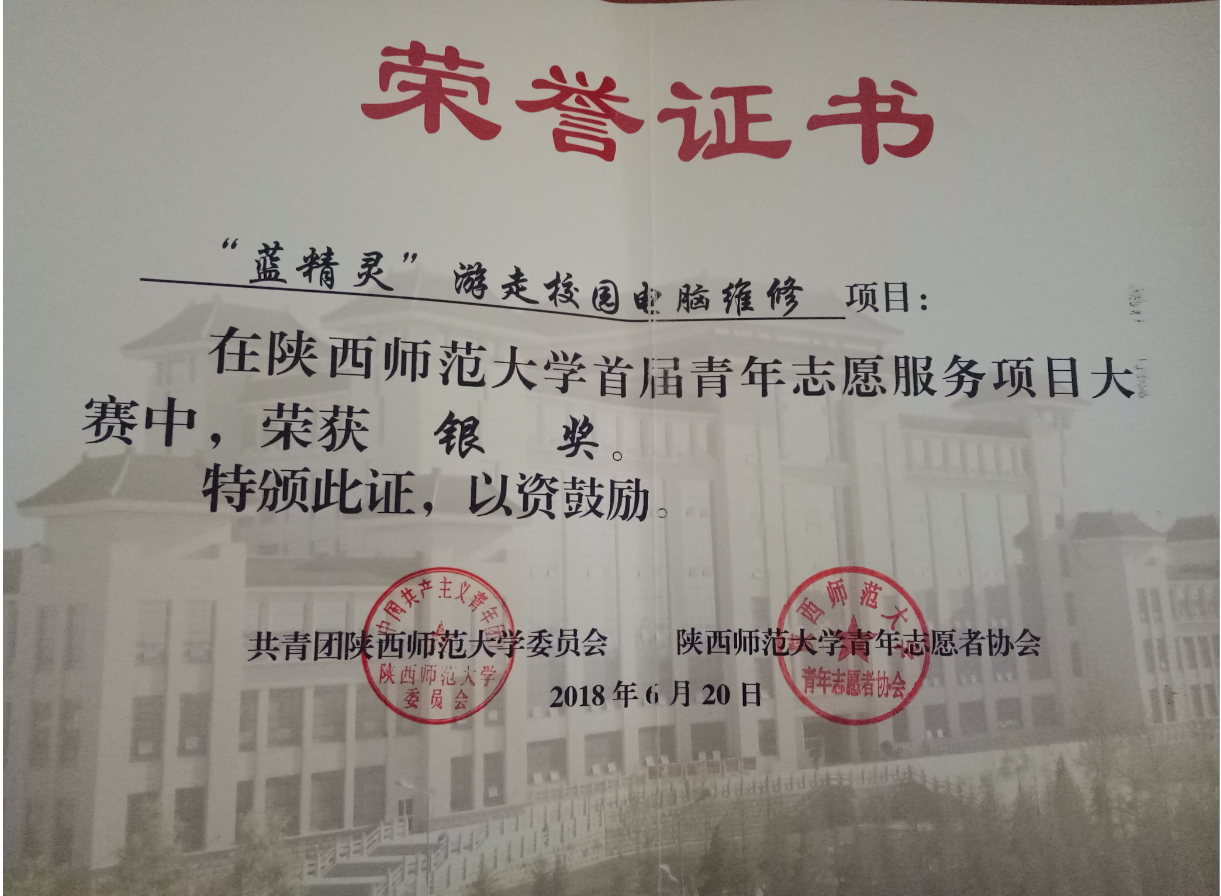 学生组织蓝精灵志愿服务队的志愿服务项目获评91猫先生