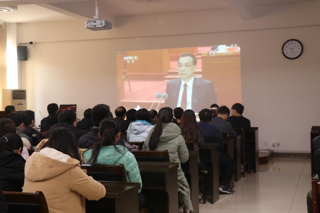 组织师生代表在文津楼四层学院报告厅集中收看庆祝改革开放40周年大会直播。学院党政领导班子、教师代表、学院办公室、学工组辅导员、本科生、研究生代表共计100余人参加了观看活动。学院各党支部、团支部、学生骨干代表通过其他形式对大会内容进行了学习。