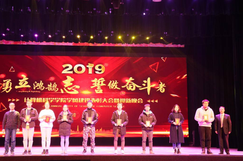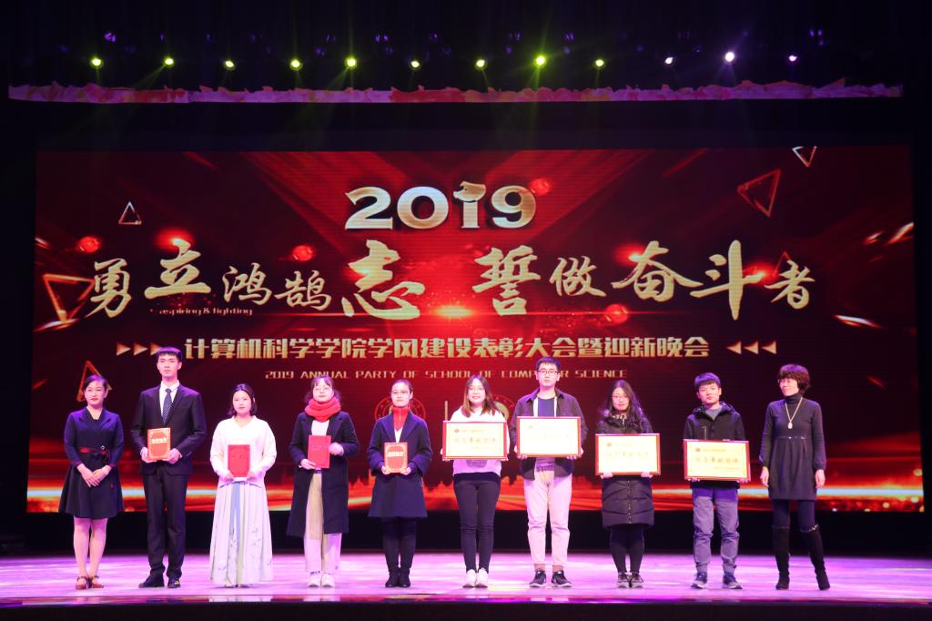学风建设综合表彰大会表彰决定》。王小明教授、吴振强教授为黄海超、董昊等表现优秀的学术科研标兵代表颁发了证书;黄怀平老师和姚若侠教授为杨思誉、刘星霖等文艺体育标兵代表颁发了荣誉证书;袁冰老师和汪西莉教授为隋丰隆、刘佳华等表现优秀的服务奉献个人以及计算机科学与技术(创新实验班)1501班、蓝精灵志愿服务队、学院91猫先生 - 91猫先生最新高清自拍官网、马列理论读书社、计算机科学协会等服务奉献团体颁发了荣誉证书与奖牌;董春生老师和毛庆老师为计算机科学与技术(创新实验班)1501班、计算机科学与技术(创新实验班)1601班、计算机科学与技术1602班、计算机类1704班等4个优良学风示范班集体与计算机类1701班团支部、计算机科学与技术1502班团支部、软件工程1502班团支部、计算机科学与技术1702班团支部等4个优秀团支部颁发了奖牌。