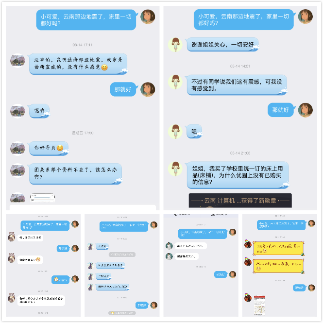 已进行了家庭经济困难的新生家庭走访和云南新生关怀活动。在走访活动中,学院对受访家庭表示关怀,并送去了慰问品,还详细介绍了学校及学院相关情况、资助政策,解答了学生、家长的问题。因云南突发地震,辅导员安琪便在第一时间询问云南学生是否受灾,所幸均未受灾。