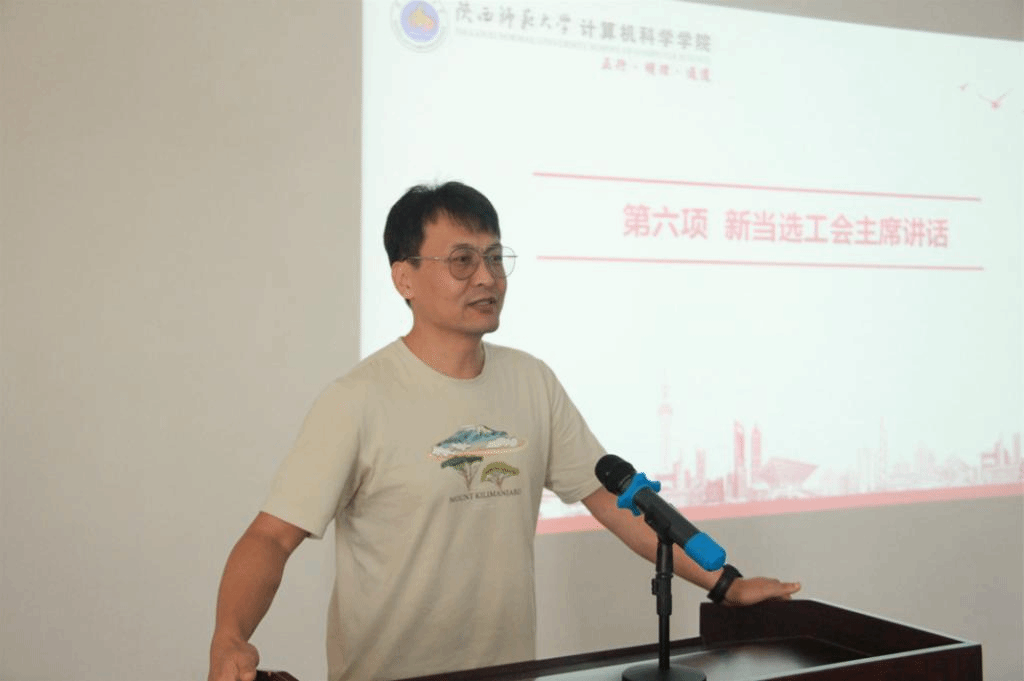 新当选工会主席祁超讲话。他表示,工会是职工之家,是党联系职工群众的重要桥梁和纽带,新一届工会委员将从教职工切身利益出发,积极为大家办好事、办实事,努力让广大教职工“暖心”、“放心”、“舒心”。