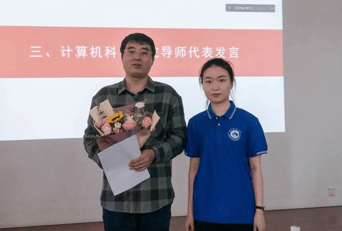 研究生导师代表郭龙江就如何做好研究生阶段的成才规划,从五方面为同学们提出建议。他提到要积累科研成果掌握科研能力,尊敬导师善于团结合作,养成崇尚优良的学术道德,培养自己各项工作的能力,经常锻炼身体保持健康体魄。新生代表向郭龙江老师献花,送上教师节的诚挚祝福!