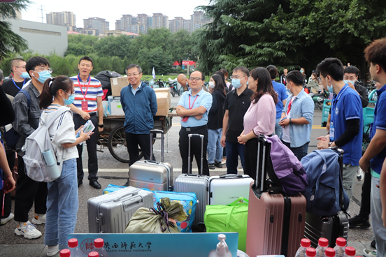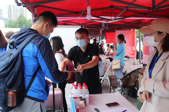 9月6日上午,在学校北门的学院迎新点,校党委副书记王永安、党委研究生工作部副部长郝高建与大家进行亲切交流,了解了学院新生报到及迎新服务保障情况。
