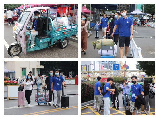 迎新志愿者积极服务、主动担当,在校门口迎新点、学院报告厅积极帮助新生们完成行李搬运、材料提交等任务。