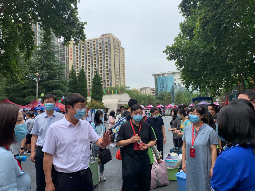 8月25日上午,在学校西门的学院迎新展位,校长游旭群、校党委副书记王永安详细了解了新生报到及迎新服务保障情况,并对参加迎新工作的师生、志愿者表示亲切慰问。