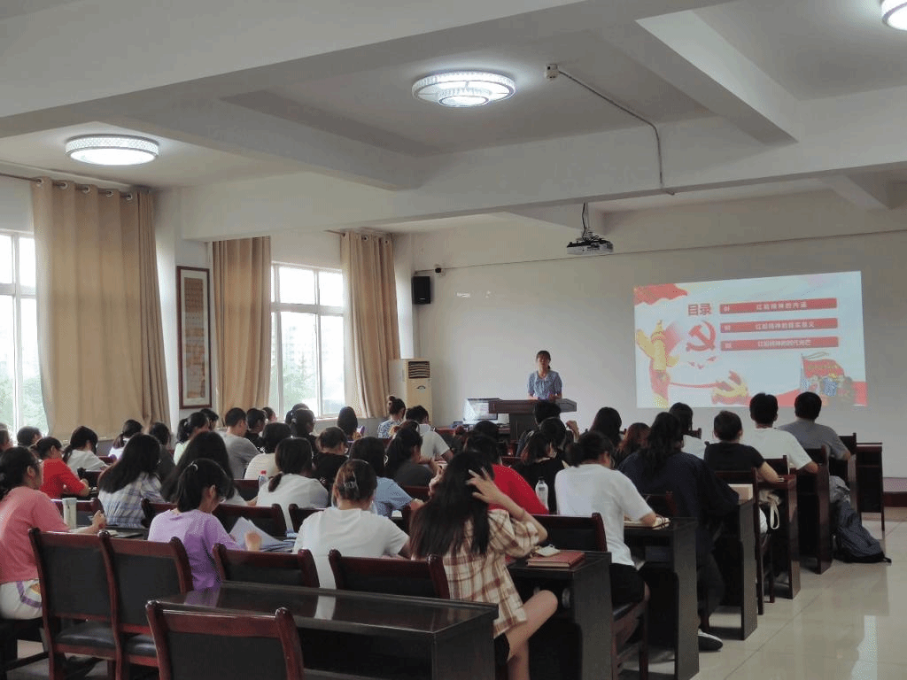安琪首先为大家讲解了“红船精神”的由来。随后,安琪从“红船精神”的具体精神内涵、现实意义和“红船精神”的时代光芒三个方面进行讲解。她指出开天辟地、敢为人先的首创精神,坚定理想、百折不挠的奋斗精神,立党为公、忠诚为民的奉献精神,不仅激励着我党始终站在历史和时代发展潮头,矢志不渝地为人民谋幸福。更是激励新时代共产党人自我革新,保持蓬勃斗志,在百年未有之大变局中应对风险挑战,永葆生机活力的坚强精神支撑。
