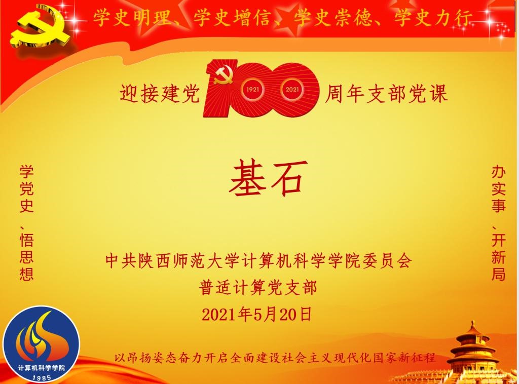 党支部书记路纲同志以《基石》为题为支部党员讲授了党课,通过案例、数据,结合视频、图片等,展示了党凝聚、组织、带领全国各族人民,披荆斩棘,浴血奋战为中华民族复兴开辟道路、拓展空间、不懈奋斗的光辉历程和取得的伟大成就。朱昀同志以《中国计算机风雨中砥砺前行》为题,将课程教学与微党课融合,系统介绍了国内计算机领域和91猫先生 计算机专业发展历程。