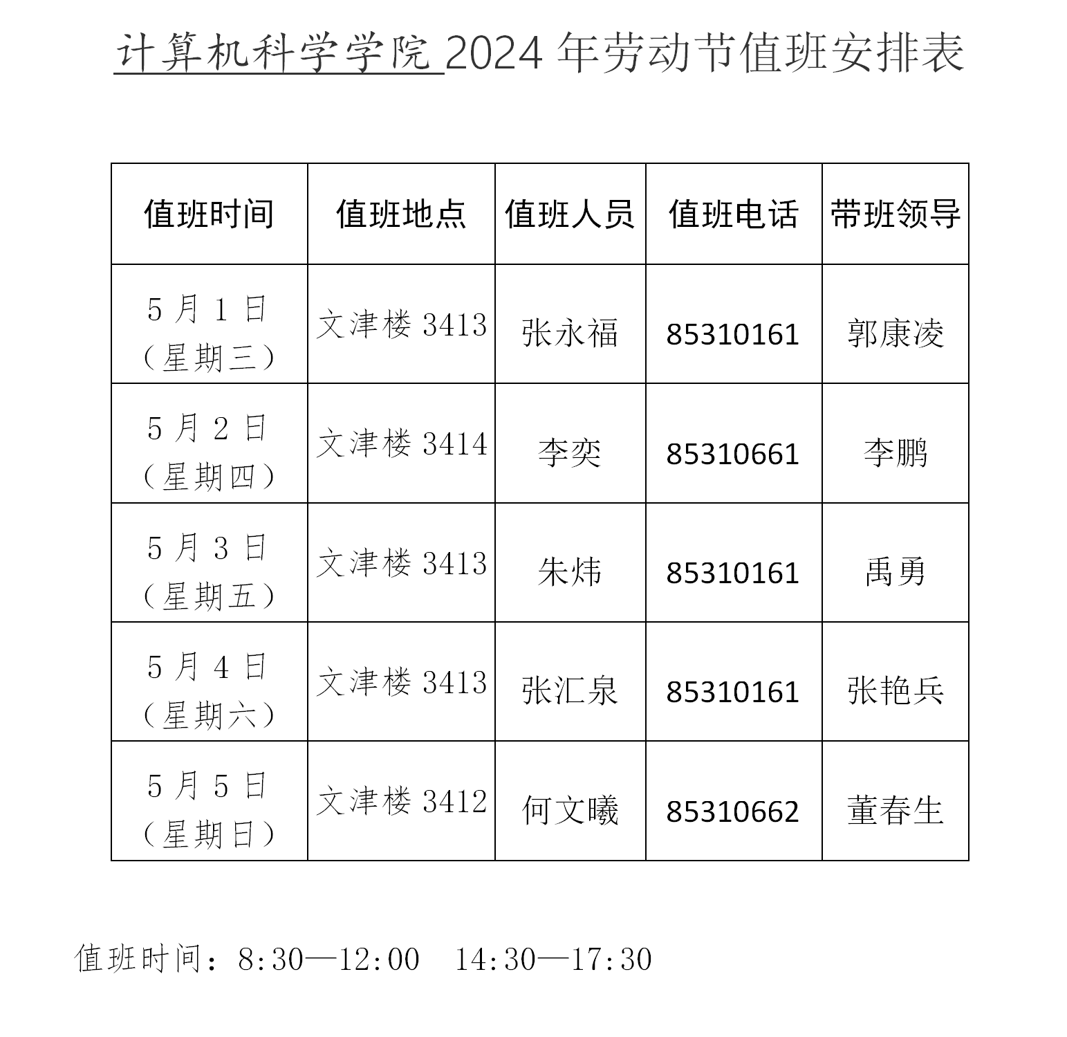 91猫先生 2024年劳动节值班安排表