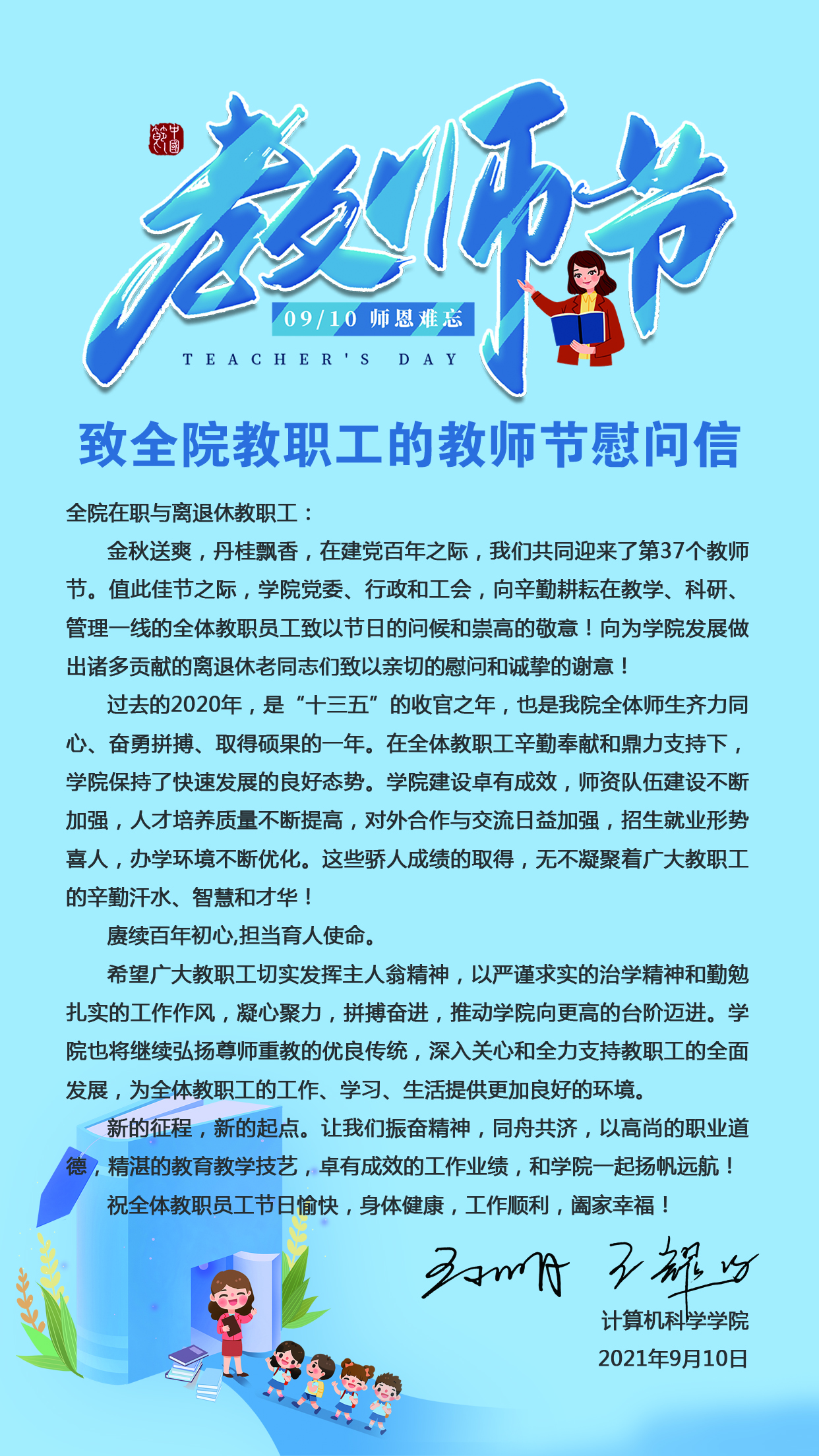 致全院教职工的教师节慰问信