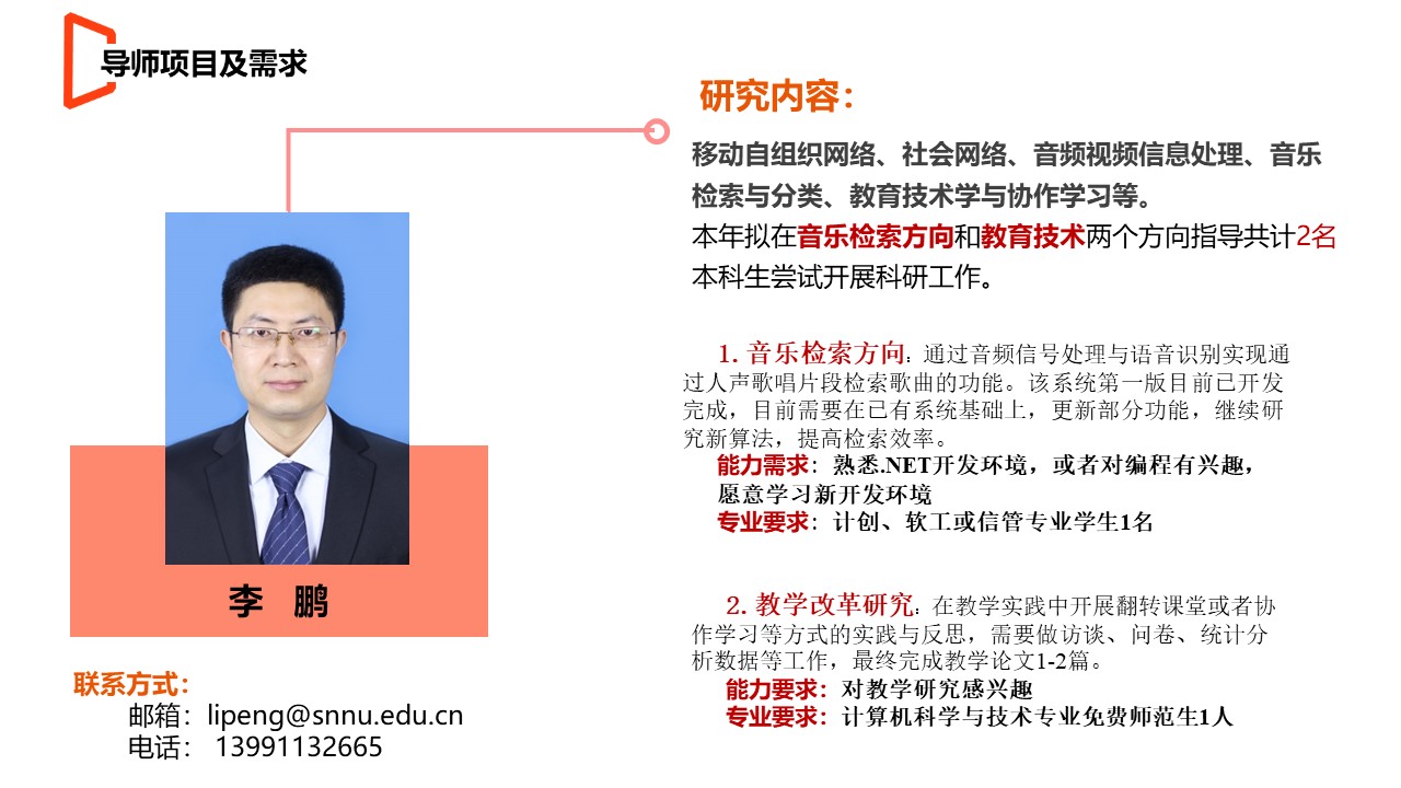教师科研项目需求进行公布,希望有意向的本科生同学与教师进行联系。