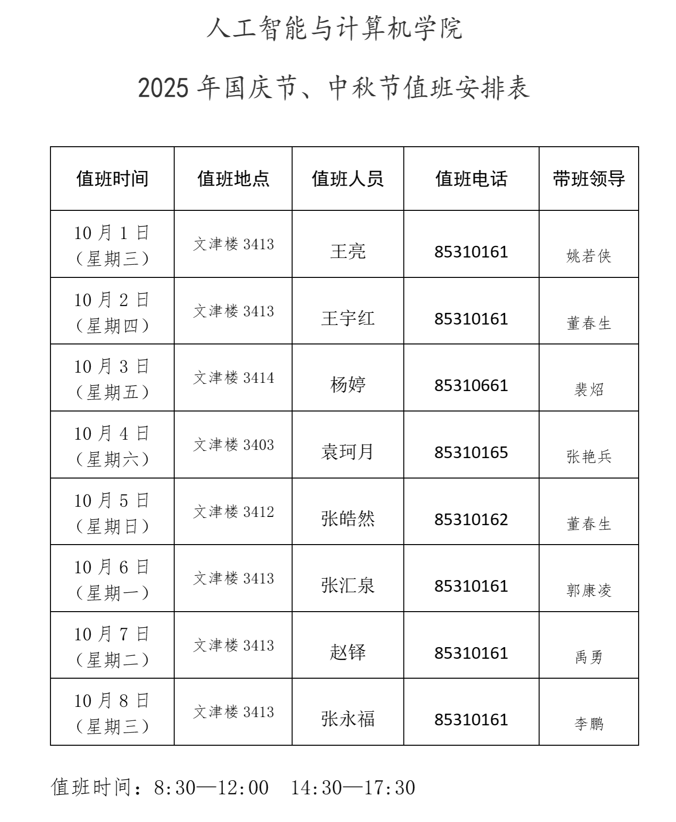 91猫先生 2025年国庆、中秋假期值班安排