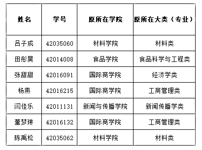 2020级本科生非师范跨大类(专业)分流考核通过学生名单