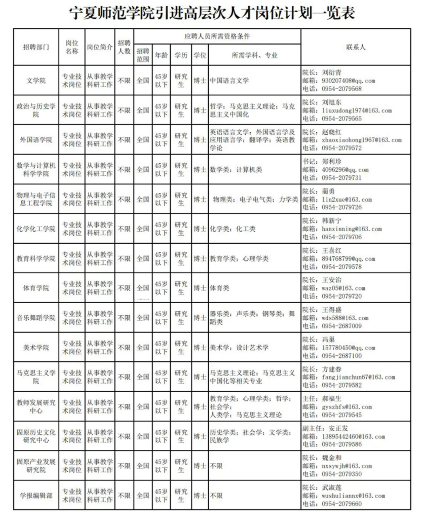 联系单位:宁夏师范学院人事处